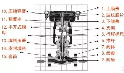 當膜室內的氣壓大于彈簧的彈力范圍及閥體內部壓力和其它阻力時,就可以推動閥芯、閥桿、推桿等構件自由運動了。