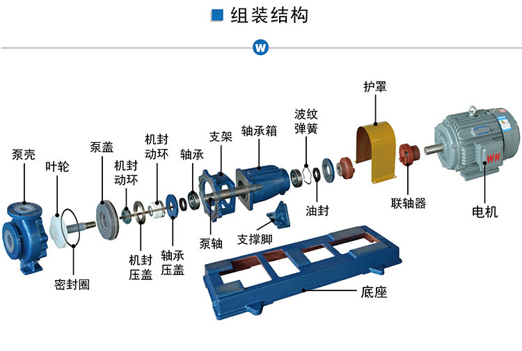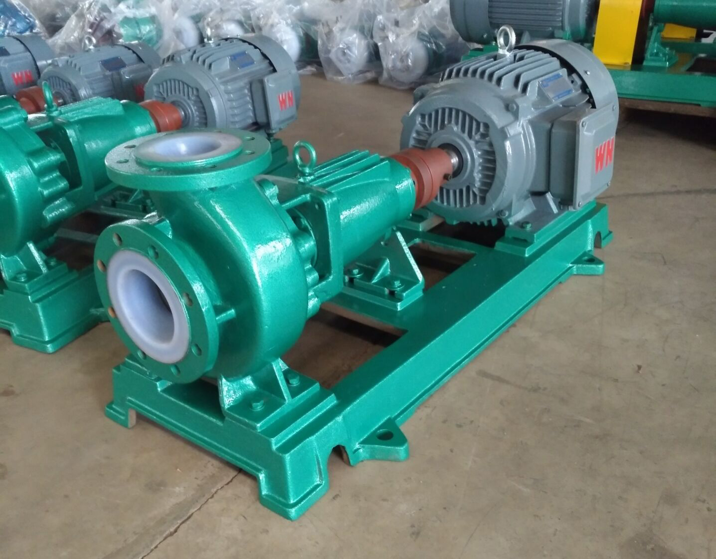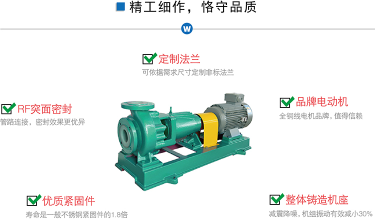 氟塑料離心泵又稱其為塑料離心泵、襯氟離心泵、耐腐蝕離心泵,IHF-J氟塑料離心泵長支架型和短支架型。氟塑料離心泵另有:IHF-D短支架型、FSB-J長支架型、FSB-D短支架型、GDF立式管道離心泵。  IHF-J氟塑料離心泵按照國標工藝標準設計制造,是本公司全新升級產品,材質采用鋼襯氟塑料,可以輸送任意濃度的腐蝕性介質,特點是外殼鑄鋼,可以承受管道壓力,過流部件采用內襯耐腐蝕性能材料氟塑料材質制成,性能優越,是現在化工、環保、醫藥、造紙等需要輸送腐蝕性介質場合的重要組成部分。