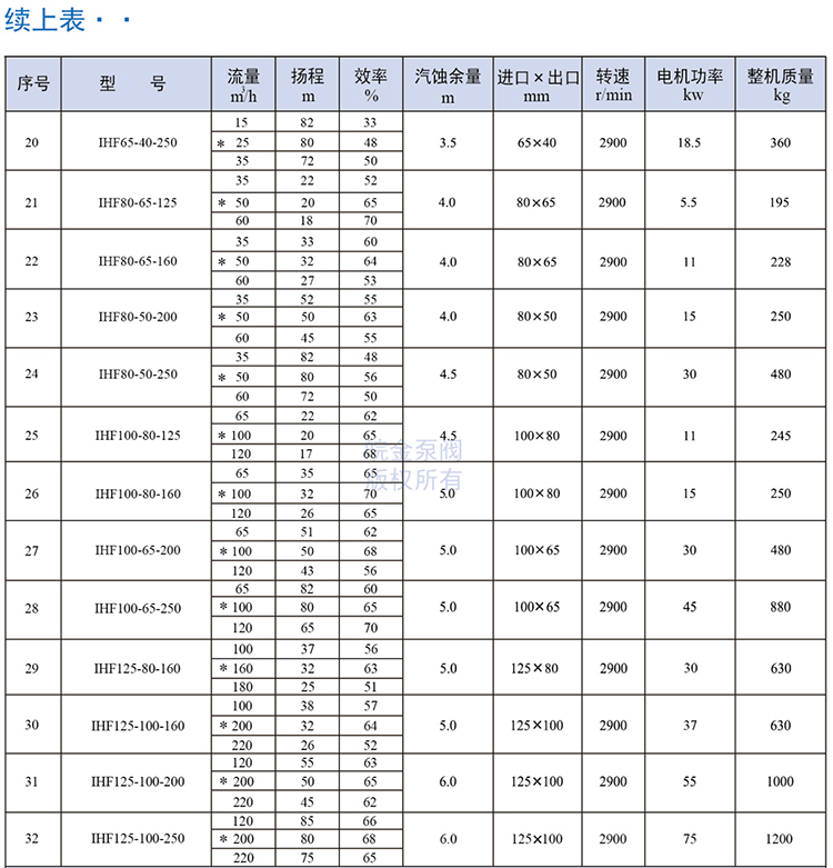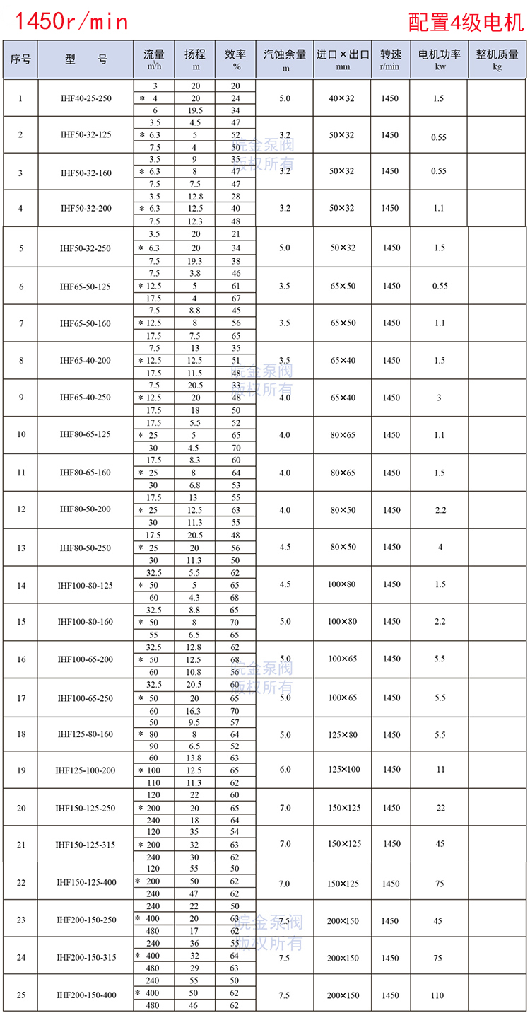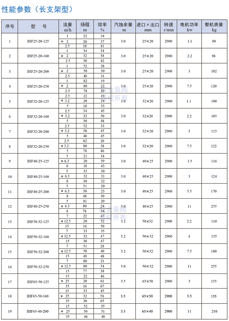 皖金泵閥氟塑料離心泵主要參數: