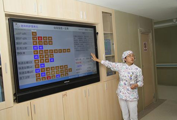 護理站電子白板系統,以觸控屏幕結合工業計算機或觸控一體機的方式,可顯示住院病人各種信息,這塊“電子白板”能與醫生工作站及病房的信息完全互動互聯,將護理電子病歷、移動護理管理、護理呼叫管理以及護理信息發布管理集成。